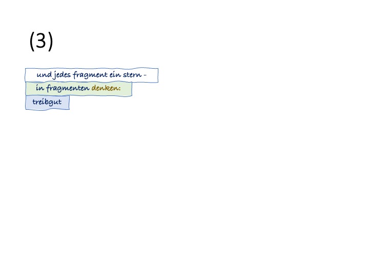 In seiner Form ist dieser Text inspiriert von „gedanken zerren“, dem Debüt-Gedichtband von Özlem Özgül Dündar, wobei ich die Form einerseits radikalisiert und andererseits aufgebrochen habe für eine Idee, die in mir gärte und die ich nun glaubte, mit diesem Format am besten umsetzen zu können. Das Potential dieser Form ist einfach klasse, weil diese gebrochene Sprache gleichzeitig so viel Ungesagtes mitschwingen lässt – eine echte Entdeckung!